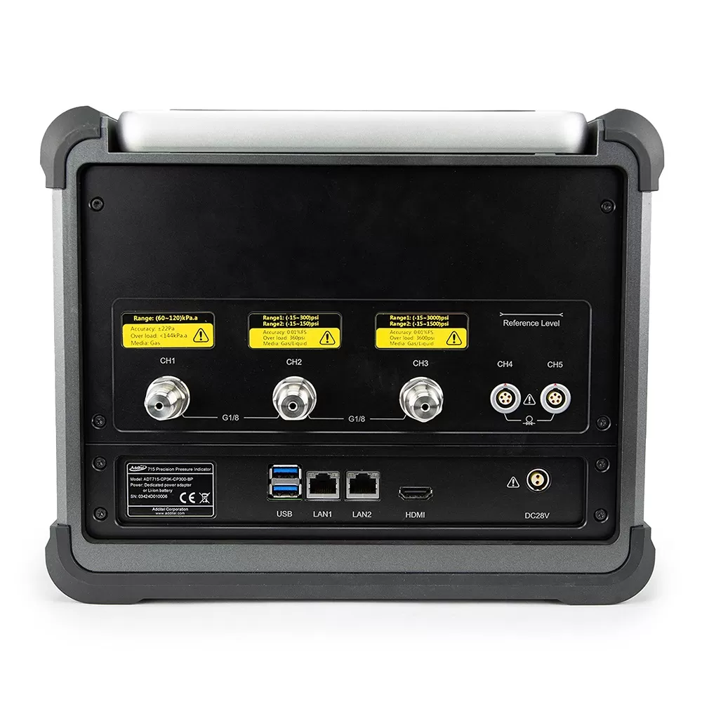 Para maior capacidade, o ADT715 suporta módulos internos de alta precisão e até dois módulos de pressão digitais externos, permitindo até cinco entradas de pressão simultâneas. Com a adição do módulo barométrico integrado, o ADT715 é a solução ideal para laboratórios de calibração, ambientes de fabricação e qualquer aplicação que exija medição de pressão altamente precisa.