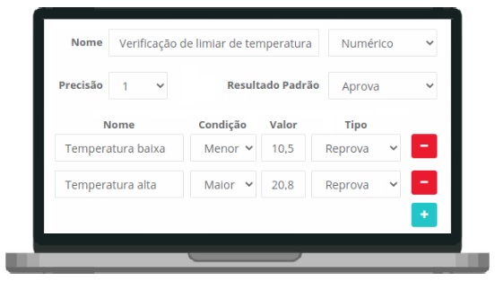 + Inserção numérica, textuais, semáforo, lista e datas.